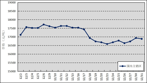 國內(nèi)主銷區(qū):12月,上海、青島和天津等銷區(qū)市場的國產(chǎn)全乳標準膠平均價格為17179元/噸,環(huán)比上漲287元/噸,最高價為17717元/噸,最低價為16583元/噸。