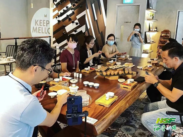 品鑒活動現(xiàn)場,新加坡博聞有限公司創(chuàng)始人梁陳組織現(xiàn)場嘉賓一起品鑒海墾熱作產業(yè)集團旗下的母山咖啡、白馬駿紅紅茶產品。視頻連線中,海墾熱作產業(yè)集團工作人員向嘉賓介紹了母山咖啡和白馬駿紅紅茶的起源、種類和特性等小知識,并進行了茶藝文化交流。