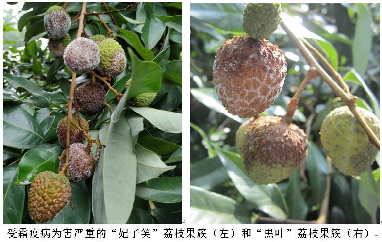 荔枝霜疫?。óa(chǎn)區(qū)也稱霜疫霉病或霜霉病)是我國除海南外其它主產(chǎn)區(qū)的最主要病害,在荔枝果實(shí)轉(zhuǎn)色至成熟采摘階段,如遇雨天最易發(fā)生流行,可造成大量的荔枝果實(shí)腐爛、脫落(見下圖)。近期,廣西、珠三角及以北地區(qū)出現(xiàn)新一輪強(qiáng)降水,荔枝病蟲害監(jiān)測站調(diào)查發(fā)現(xiàn),荔枝霜疫病在各產(chǎn)區(qū)不同程度發(fā)生,少數(shù)果園病果率在15%以上。據(jù)中國天氣網(wǎng)最新預(yù)報:未來10天,我國江南、華南、西南地區(qū)東部及江漢等地降雨量將達(dá)到50—100毫米,部分地區(qū)達(dá)到120—180毫米,局地超過250毫米,降雨量較常年同期偏多3—6成。這將加重荔枝霜疫病的發(fā)生與流行。對此,專家建議荔枝主產(chǎn)區(qū)監(jiān)測站和生產(chǎn)管理部門應(yīng)密切關(guān)注本地區(qū)天氣變化,加強(qiáng)監(jiān)測與應(yīng)對,指導(dǎo)荔枝種植者做好防控工作。