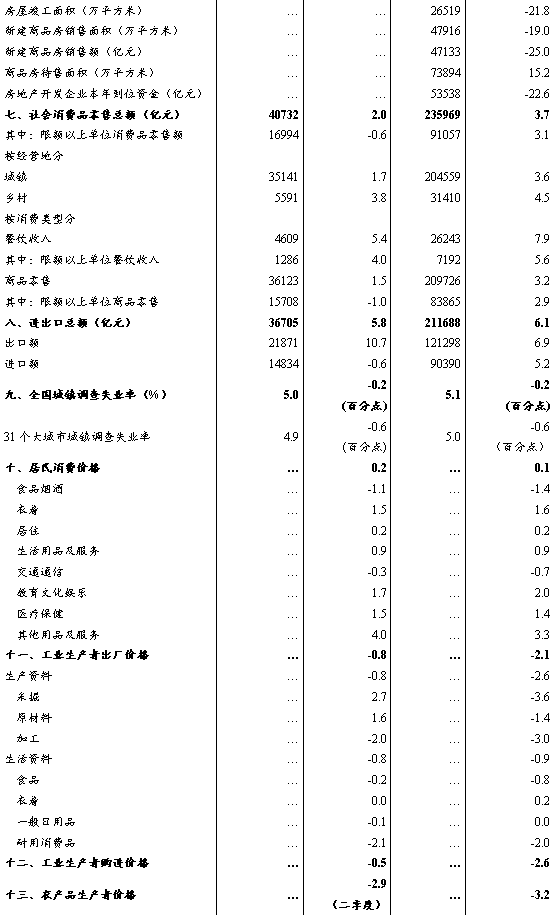 3.失業(yè)率累計(jì)數(shù)據(jù)為各月平均值。
