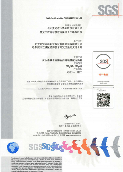 北大荒完達(dá)山乳業(yè)奶粉獲低GI產(chǎn)品認(rèn)證