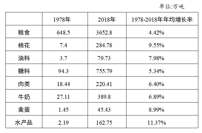 表1:1978-2018年農(nóng)墾糧食和主要農(nóng)產(chǎn)品產(chǎn)量和年均增長率