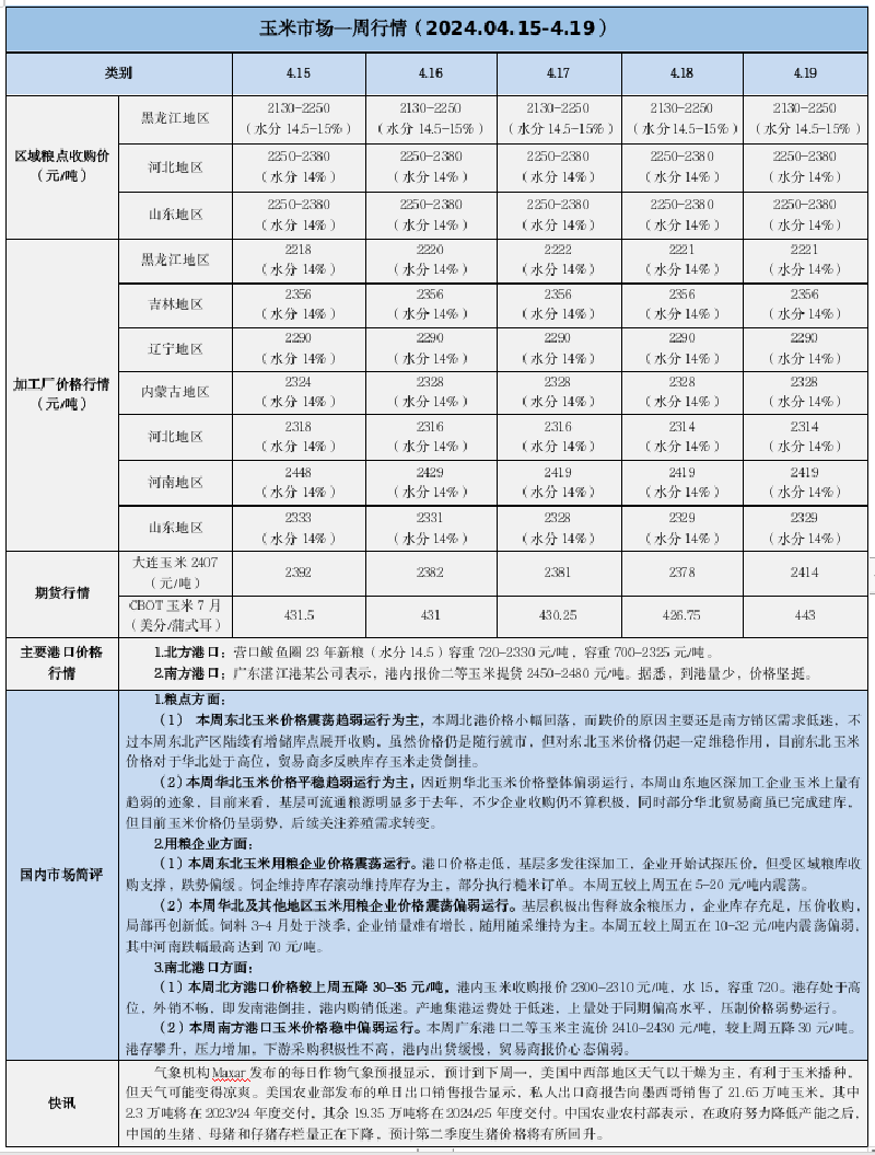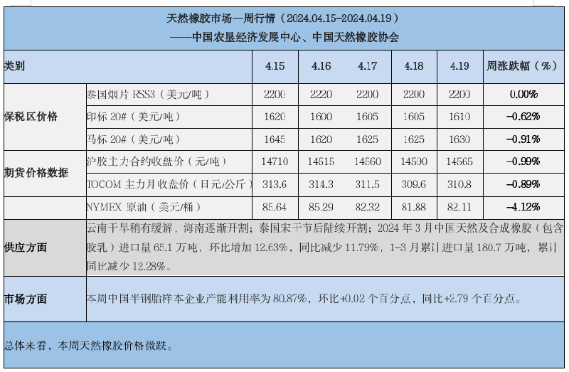 天然橡膠、大豆、玉米市場一周行情(2024.04.15-04.19)