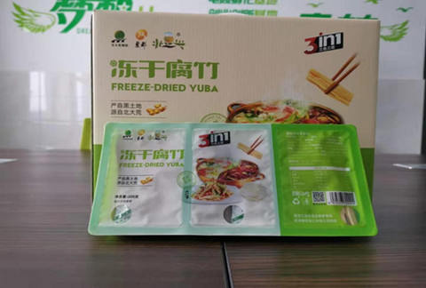 含量高:蛋白質(zhì)含量比烘干腐竹高15%、脂肪含量比烘干腐竹高 8%。先進的真空凍干技術,取代傳統(tǒng)的高溫烘干腐竹工藝,低溫工藝保障腐竹自身的大豆蛋白不變性、不破壞、不流失。