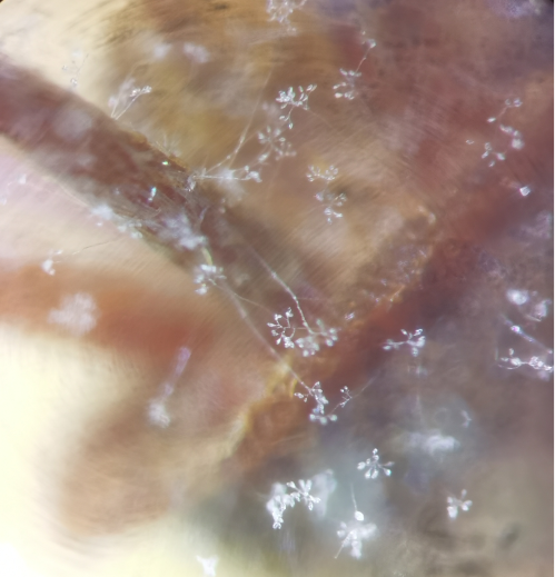 圖2 荔枝小花保濕長(zhǎng)出白色霉?fàn)钗?