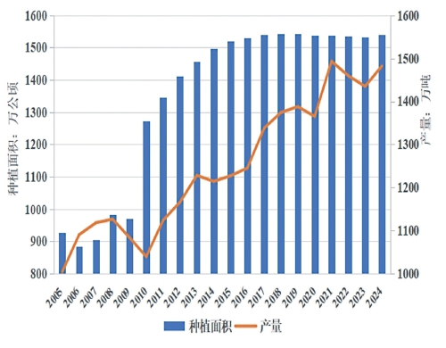 全球天然橡膠種植面積和產(chǎn)量情況?!?shù)據(jù)來(lái)源:農(nóng)業(yè)農(nóng)村部南亞熱帶作物中心