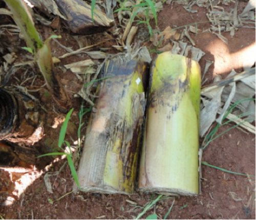 (二)誘集監(jiān)測與誘殺防治:田間利用切割的香蕉秸稈進(jìn)行誘集,以監(jiān)測象甲發(fā)生情況;利用香蕉象甲信息素誘劑制成誘捕器進(jìn)行誘捕殺滅。
