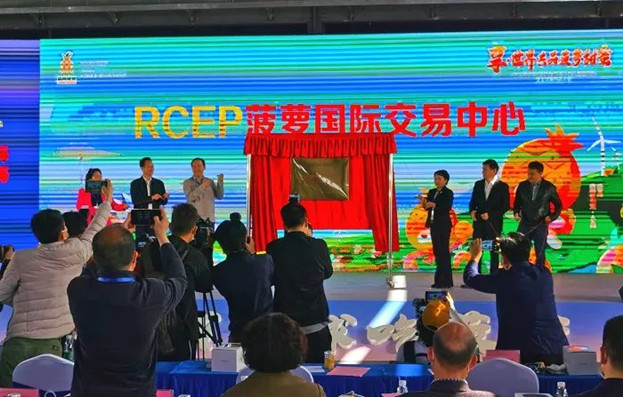 3月10日,由湛江農(nóng)墾負(fù)責(zé)建設(shè)的湛江菠蘿產(chǎn)地運營中心投入使用,RCEP菠蘿國際交易中心同時在中心揭牌。