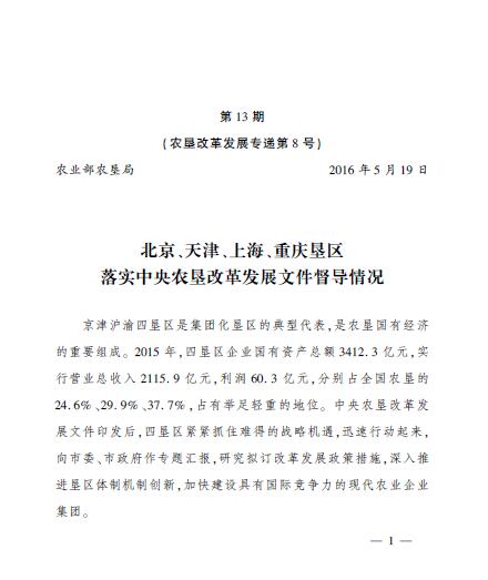 農(nóng)墾情況第13期(農(nóng)墾改革發(fā)展專遞第8號(hào))