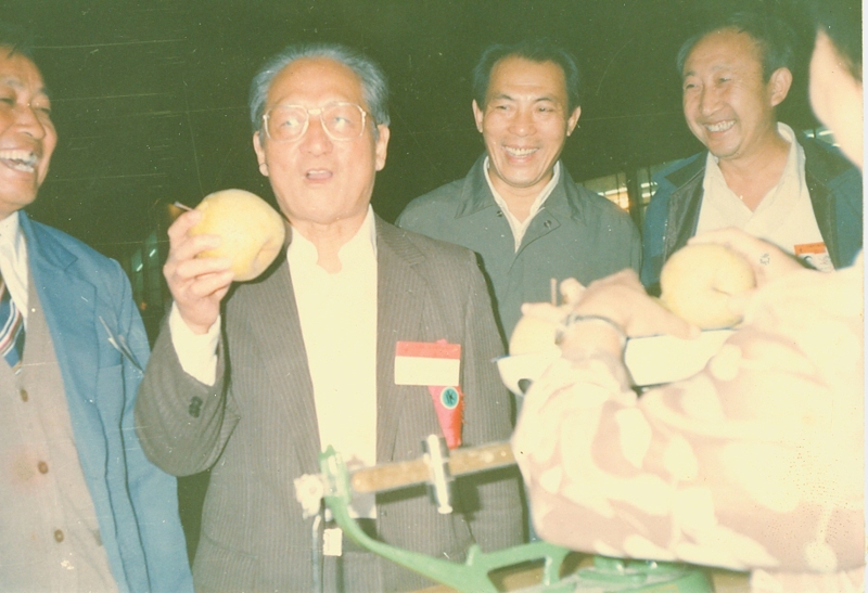 9月27日晚上7-10時,展銷會安排專賣展銷,主要是黨中央、國務(wù)院領(lǐng)導(dǎo)人和各部委辦負責人來展銷會參觀、購物。晚上八點多,何康等部領(lǐng)導(dǎo)先后來到安徽展銷點參觀。何康駐足碭山酥梨柜臺,隨手拿起一個金黃的酥梨在手心里掂量著,對陪同在旁的安徽農(nóng)墾代表團團長周維成說道:“我來替你們宣傳?!卑不請F工作人員手持照相機對著這個場面按下快門,留下本文開頭介紹的那個寶貴鏡頭。何康說過這句話之后,把梨子放回原處。呂清問碭山梨一個有多重,隨團的碭山果園場售貨員立即拿一個梨放在磅秤上,“一斤四兩重”,何康開懷大笑。