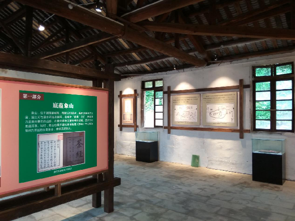 茶史陳列館。位于貴州省湄潭茶場打鼓坡分場場部舊址內,始建于2017年,原名“象山茶史陳列館”,是由貴州茶文化生態(tài)博物館負責籌建的一個以展示象山茶葉發(fā)展歷史的專題陳列館。館舍占地面積約1000平方米,展陳內容包括圖文展廳、室內實物場景復原和室外展板三部分:圖文展廳包括“前言”“底蘊象山”“家國象山”“激情象山”“美麗象山”五部分11單元圖片、文字和文獻影印件;室內實物場景復原包括分場收青室、辦公室、活動室和職工宿舍等四部分。室外展板包括“中華茶文化名山”“貴州茶葉第一縣”兩部分。展陳實物40余件,復制品20余件,圖片240余張。