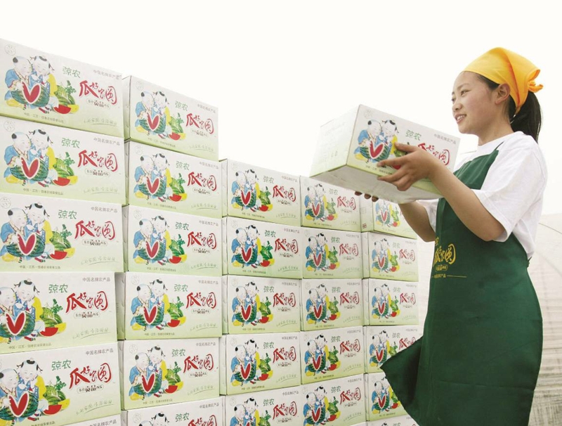 農(nóng)場黨委以問題為導向,成立西瓜產(chǎn)業(yè)發(fā)展領導小組,確立西瓜產(chǎn)業(yè)總體發(fā)展思路,將大棚西瓜的年種植面積穩(wěn)定在1萬畝左右,同一塊土地間隔4~5年種植一次大棚西瓜。“水旱輪作種植”模式不僅西瓜品質(zhì)、產(chǎn)量上去了,而且病蟲害少了,土壤結構改善了。協(xié)會制定并下發(fā)了標準化技術規(guī)程、《無公害、綠色西瓜生產(chǎn)手冊》,出臺了“關于加強環(huán)境保護建設生態(tài)農(nóng)場工作的意見” 和“關于做好無公害、綠色農(nóng)產(chǎn)品質(zhì)量追溯工作的意見”。西瓜產(chǎn)業(yè)從低水平、無序化的一家一戶式生產(chǎn)向組織化、規(guī)?;藴驶?、無公害、綠化、有機農(nóng)產(chǎn)品生產(chǎn)邁進。2002年注冊了“弶農(nóng)”牌商標,2008年獲得“中國名牌農(nóng)產(chǎn)品”、“江蘇名牌產(chǎn)品”等榮譽稱號,“弶農(nóng)”牌西瓜步入品牌化發(fā)展階段。2020年“弶農(nóng)”牌西瓜成功獲批江蘇省首批“江蘇精品”。