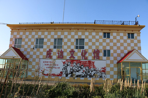 一八六團(tuán)戍邊文化館位于一八六團(tuán)六連連部,緊鄰諾亞堡民兵哨所,離一八六團(tuán)團(tuán)部五公里,戍邊文化館為框架結(jié)構(gòu)、局部三層、高度為9米,建筑面積為400平方米。2011年開(kāi)始建設(shè),2014年5月6日裝修布展工程全面竣工,展廳面積280平方米,陳展實(shí)物50件,年均接待2000人次。2017年史館被授予“兵團(tuán)廉政教育基地”,2018年被授予“十師民族團(tuán)結(jié)進(jìn)步教育基地”。
