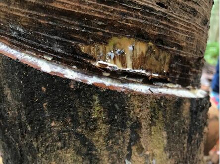 (一)規(guī)范割膠:嚴(yán)格執(zhí)行“一淺四不割”割膠制度,即科學(xué)安排割膠深度,不要一味追求膠乳產(chǎn)量而“深割”,樹(shù)身不干不割膠,低割線不割膠,早晨氣溫低于15℃不割膠,未經(jīng)治療處理的發(fā)病樹(shù)不割膠。結(jié)合割膠制度改革,采用乙烯利刺激割膠,降低割膠頻率。