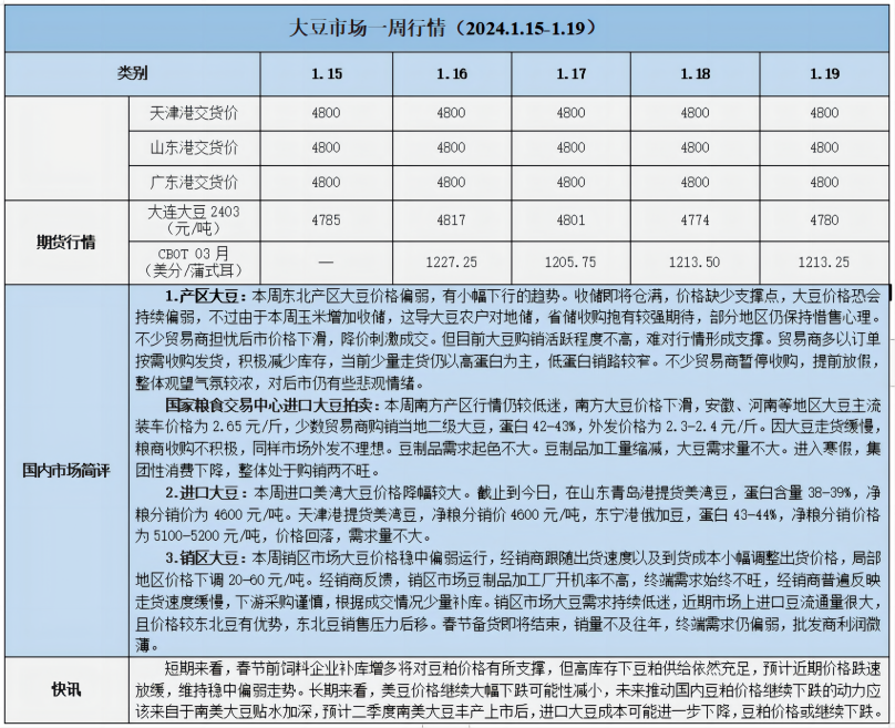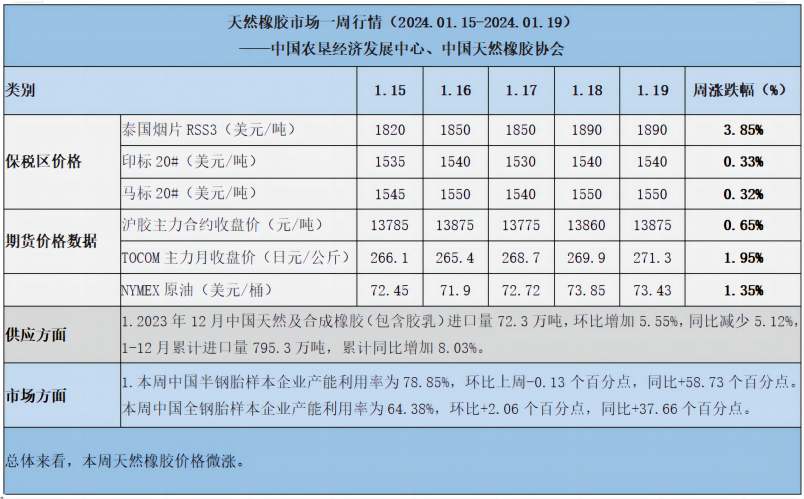 天然橡膠、大豆、玉米市場(chǎng)一周行情(2024.1.15-1.19)