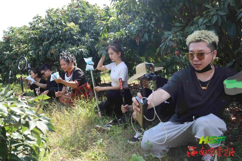 海口火山荔枝產(chǎn)業(yè)旺,吸引許多電商前來直播帶貨。王小龍 攝。