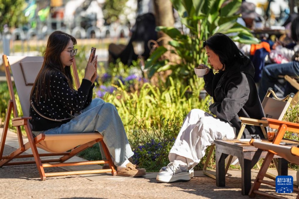 2月21日,游客在翠湖咖啡文化中心喝咖啡、拍照。新華社記者 彭奕凱 攝