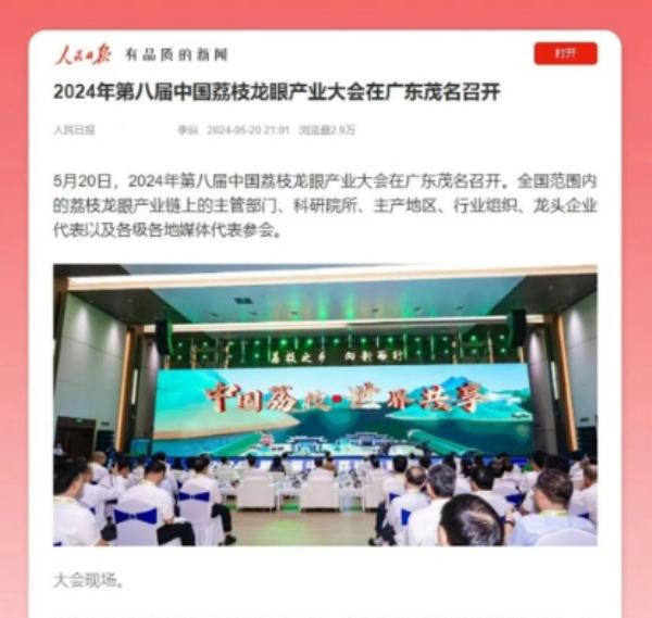 6.2024年5月,中心聯(lián)合有關(guān)單位在廣東省茂名市成功舉辦第八屆中國荔枝龍眼產(chǎn)業(yè)大會,大會以“荔枝之鄉(xiāng) 向新而行”為主題,舉辦了荔枝產(chǎn)業(yè)聯(lián)盟換屆、科技成果推介、產(chǎn)業(yè)報(bào)告發(fā)布、項(xiàng)目簽約等系列活動(dòng)。大會有關(guān)情況被《人民日報(bào)》、新華社等媒體報(bào)道。