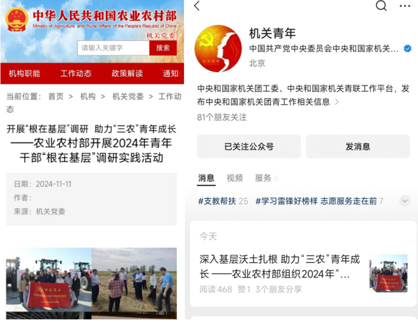 10.中心按照中央和國家機(jī)關(guān)團(tuán)工委統(tǒng)一部署,組織部系統(tǒng)青年干部10人赴北大荒農(nóng)墾集團(tuán)開展“根在基層”調(diào)研實(shí)踐活動(dòng)。相關(guān)情況被機(jī)關(guān)青年公眾號,部機(jī)關(guān)黨委網(wǎng)站宣傳報(bào)道,活動(dòng)調(diào)研報(bào)告被收錄入《農(nóng)業(yè)農(nóng)村部2024年度青年干部“根在基層”調(diào)研實(shí)踐材料匯編》。