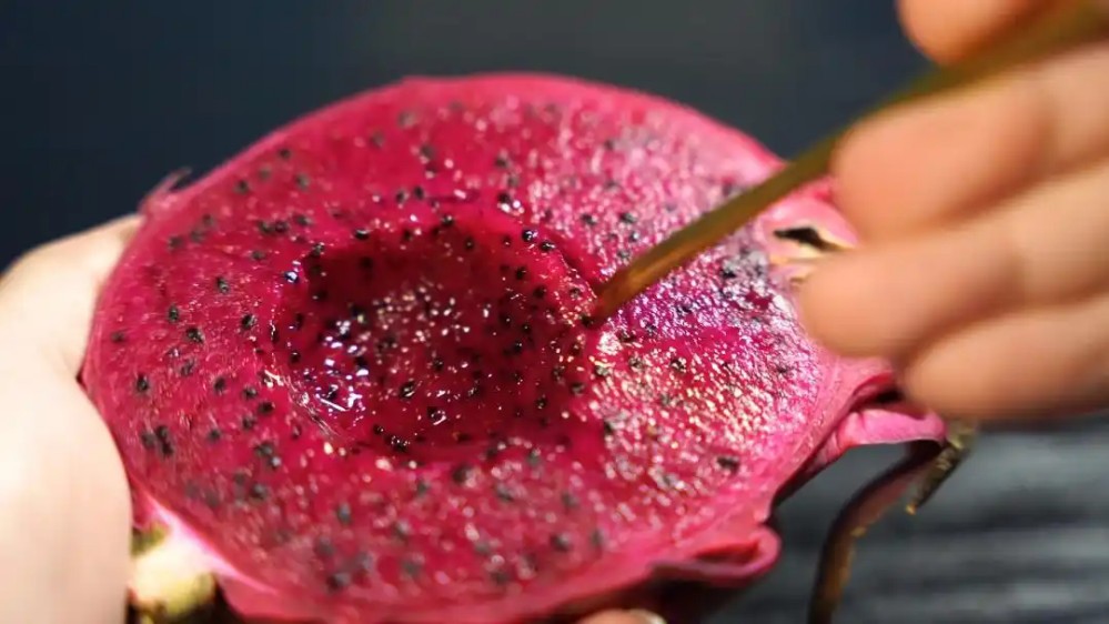 更難得的是,石漠化的逆境反而成就了火龍果的頑強。果實中花青素等有益成分含量遠超普通品種。檢測顯示,關(guān)嶺火龍果花青素含量高達4.12mg/g,總氨基酸為8.17g/100g,是火龍果中的優(yōu)良品種。
