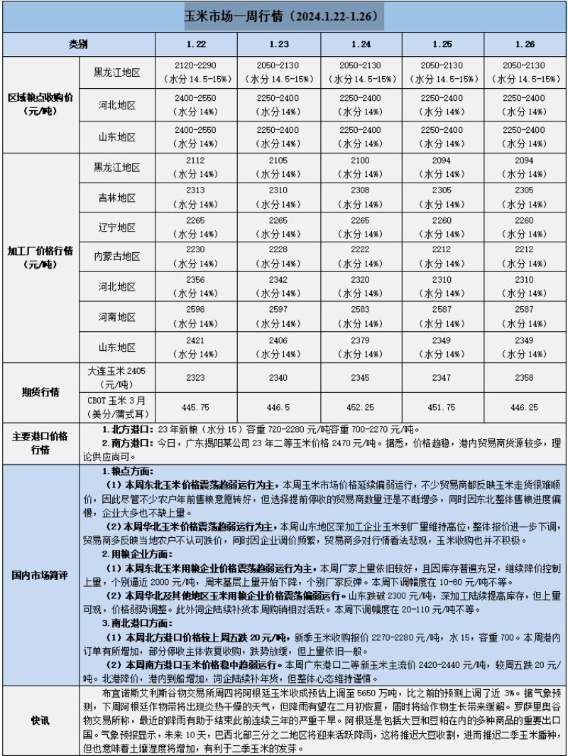 天然橡膠、大豆、玉米市場(chǎng)一周行情(2024.1.22-1.26)