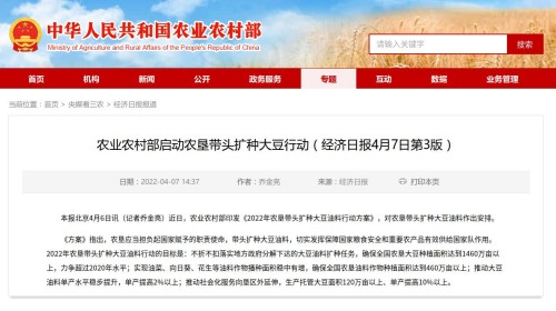 2.技術推廣處協助部農墾局完成全年春播、夏收夏種、三秋等糧食生產情況調度工作,相關報告獲農業(yè)農村部張?zhí)伊指辈块L肯定性批示。技術推廣處及經濟貿易處有關同志參與推動出臺《2022年農墾帶頭擴種大豆油料行動方案》,被中央廣播電視總臺綜合頻道(CCTV-1)報道。推動農墾全面質量管理系統等科技成果入選全國100項重大農業(yè)科技成果。