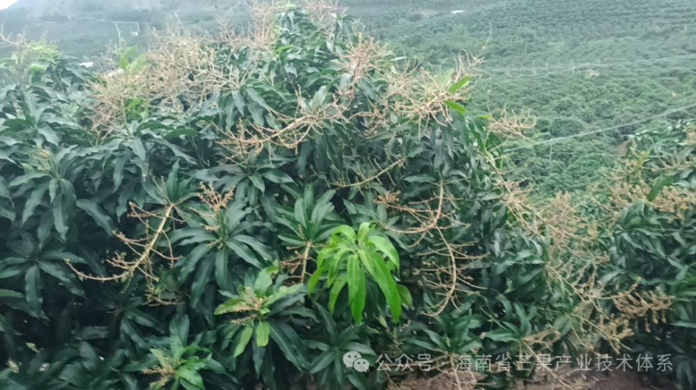 揚(yáng)花期果園受臺(tái)風(fēng)影響情況,部分花絮掉落,少數(shù)斷枝(2024年9月7日拍攝于三亞崖州坡加村一果園)