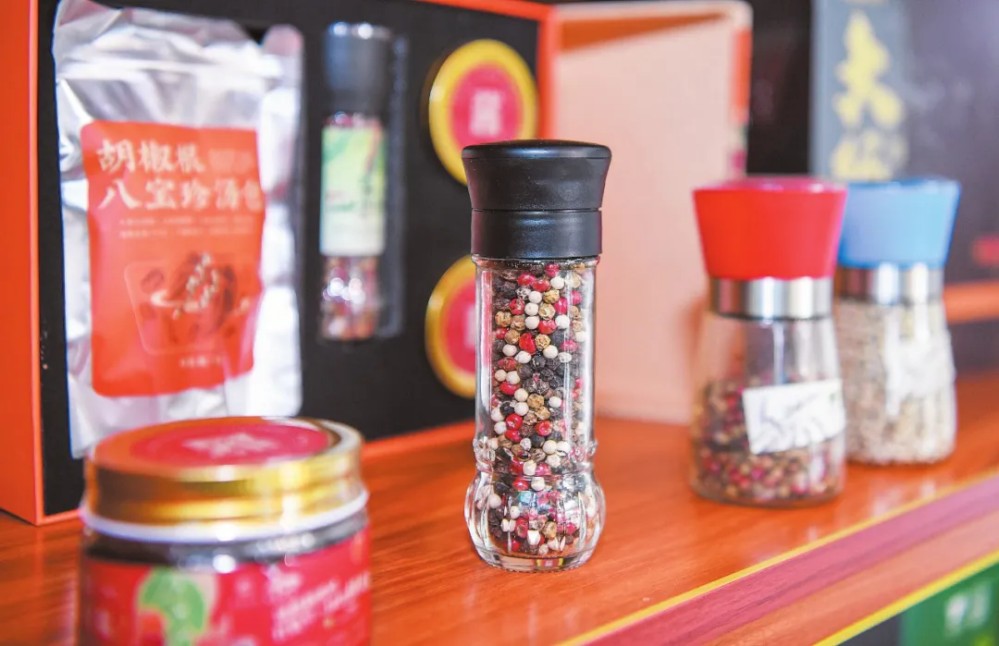 在“印象大坡”直營店展示的胡椒系列產(chǎn)品。??谌請笥浾?蘇弼坤 攝