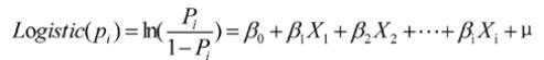 根據(jù)實(shí)地調(diào)研情況 ,本文假設(shè)選擇“ 3天一刀”、“多天一刀”新割膠制度的取值為“1”,選擇“2天一刀”傳統(tǒng)割膠制度的取值為“0”,P反映割膠制度選擇發(fā)生的概率比(1>P>0),建立Logistic模型如下: